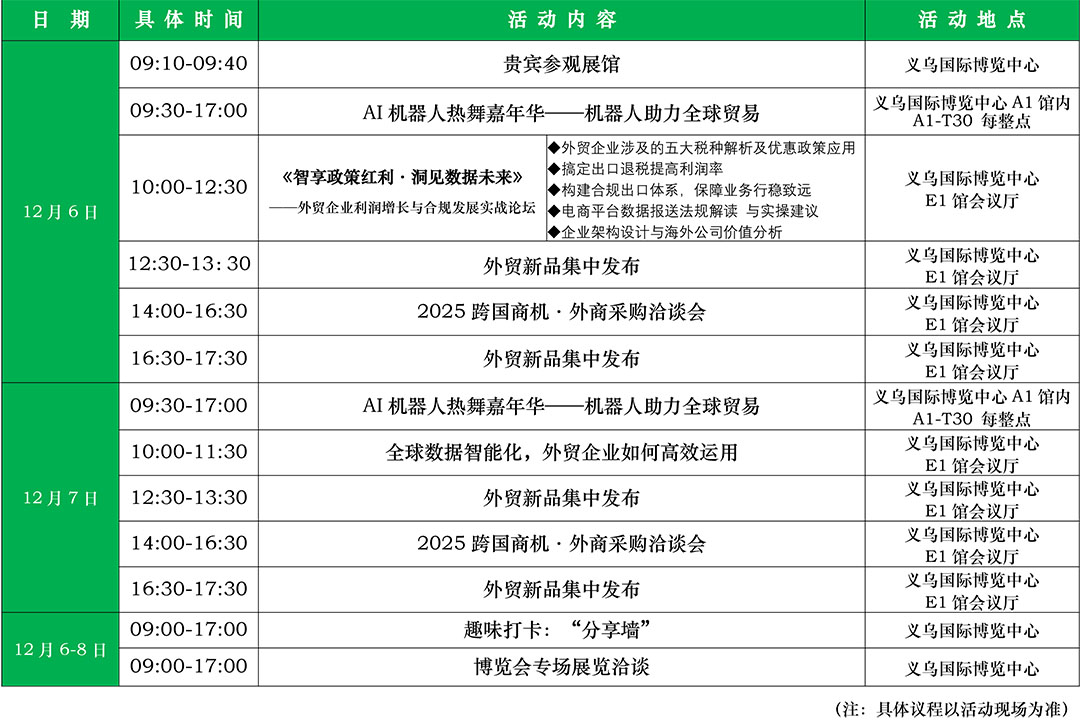 12月6-8日博览会主要活动日程安排