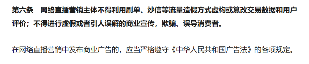 为此我还专门去查了一些信息,中国广告协会在 6 月 24 日发布的《网络直播营销行为规范》于7 月 1 日开始正式实施。
