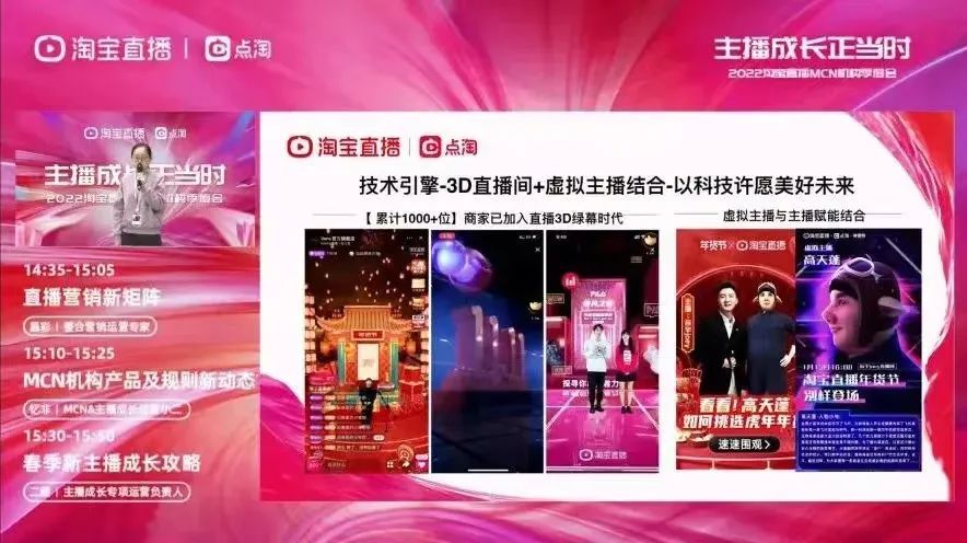 近日,淘宝召开了淘宝直播MCN机构季度会议。本次会议通过线上直播的宣讲形式,淘宝公布了直播的最新政策和玩法。2022年直播营销有三大发力方向,其中虚拟主播和3D场景成为了平台新驱力。
