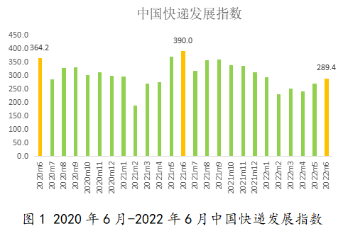 7月7日,国家邮政局举行2022年三季度例行新闻发布会,发布《2022年6月中国快递发展指数报告》,解读上半年行业运行情况。6月中国快递发展指数为289.4,环比增长7.5%,行业规模恢复进程加快,基础能力提升明显,发展态势回暖向好。