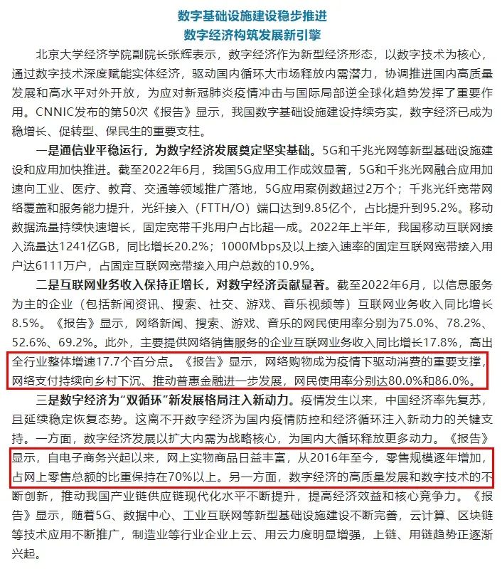《报告》还显示,网络购物成为疫情下驱动消费的重要支撑,网络支付持续向乡村下沉、推动普惠金融进一步发展,网民使用率分别达80.0%和86.0%。