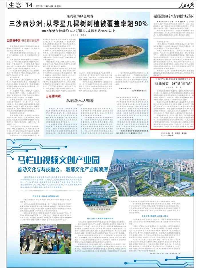 媒体报道人民日报:快递包装 减“量”增“绿”