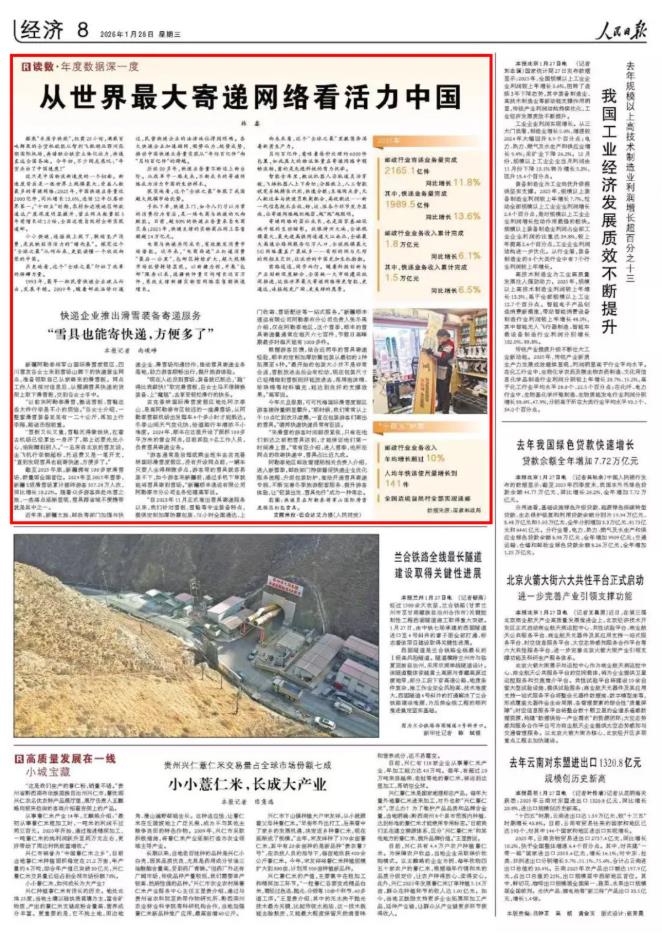 媒体报道人民日报:从世界最大寄递网络看活力中国(读数·年度数据深一度)