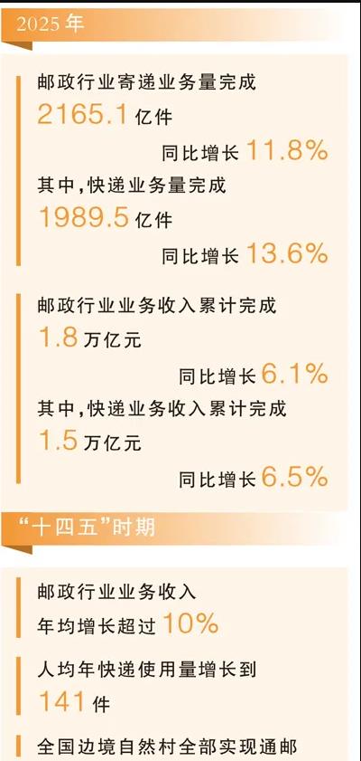 这只是中国物流新速度的一个切面。新速度背后是一张世界上规模最大、受益人数最多的寄递网络:2025年,中国快递业务量近2000亿件,同比增长13.6%,连续12年位居世界第一。“十四五”时期,农村和边境地区邮政通达广度深度明显提升,营业网点数量较5年前增长近1.5倍,全国边境自然村全部实现通邮。