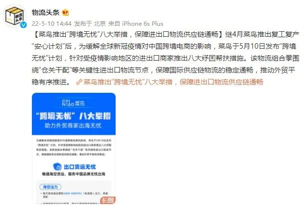 媒体报道菜鸟发布“跨境无忧”计划,推出八大纾困帮扶措施