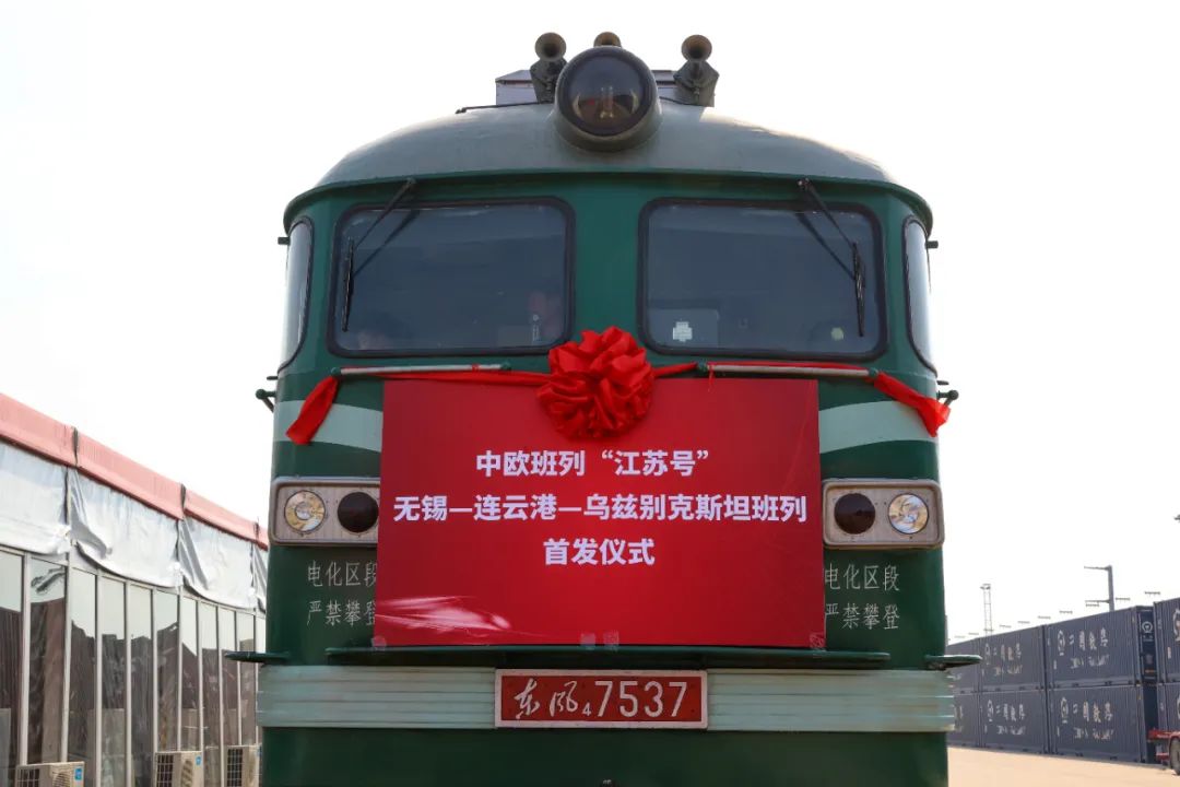 2022年8月13日,江苏无锡,中欧班列“江苏号”无锡—连云港—乌兹别克斯坦班列正式首发。