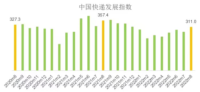 8月,发展趋势指数为67.6,环比下降1.8%。在持续做好疫情防控和保通保畅工作的基础上,预计9月将逐步走出行业淡季,快递业务量单月将有望达到100亿件左右。