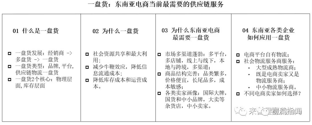 东南亚电商蓬勃发展,而一盘货是目前这个市场最需要的供应链和物流服务。本文将从四个方面依次阐述。