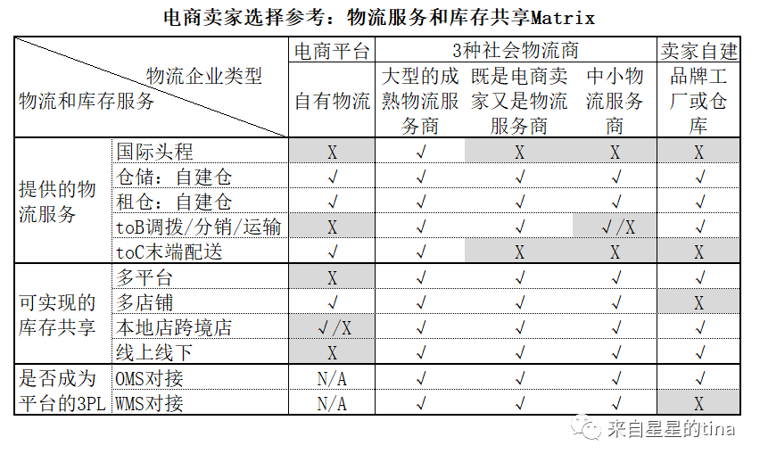 表2:卖家如何选择一盘货物流商。来源:本文作者 错字, 租仓:自建仓=仓储:租仓