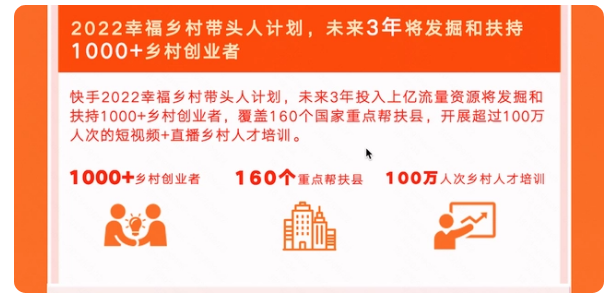在中国农民丰收节期间,快手积极开展以“幸福乡村丰收季”为主题的丰收节系列活动。在9月10日至9月26日活动期间,快手投入15亿流量资源助力「幸福乡村带头人」带动各地农特产品销售,帮助农民增产增收。